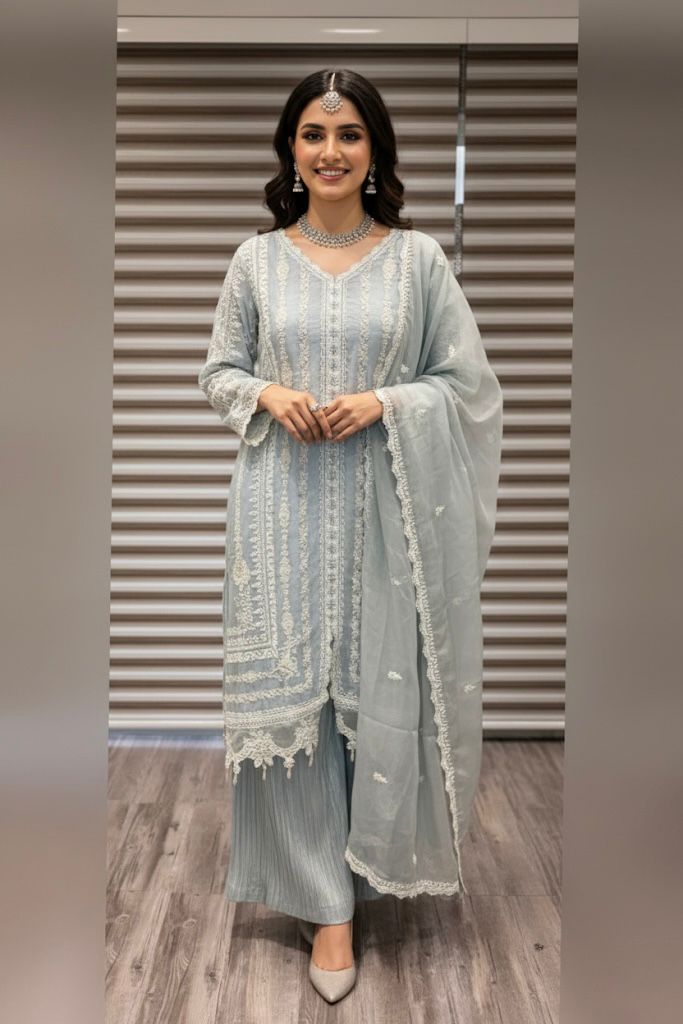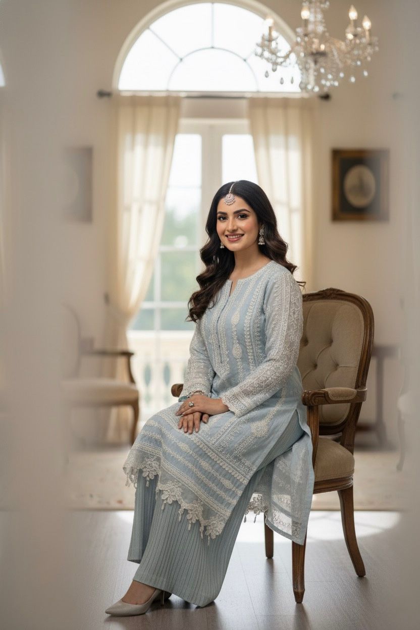 & Free ShippingElevate your style with our Pakistani Chikankari Kurti Set. Features a gorgeous embroidered straight kurta, matching pant/plazo, and dupatta. Shop the latest designer collection.